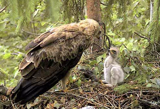 Kas interesanti - mazajam nostrādāja instinkts, kas vēlāk būs stipri izteikts, bet tik jaunā vecumā redzēju pirmo reizi - kad tētis viņa priekšā nolika medījumu, Miks atplēta spārnus sargājot.