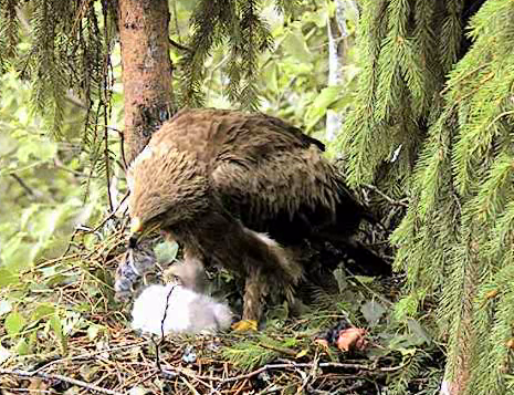 Mētra bija aizlidojusi, taču drīz atgriezās ar vardi un sāka barot mazo.