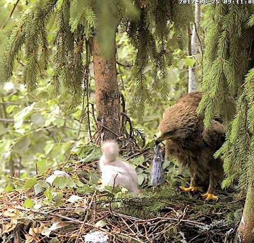 Ap 8.40 Mētra aizlidoja, atgriezās 8.51 ar vardi, kuru tūlīt sāka barot Mikam