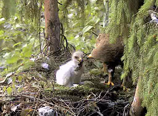 Mētra, tāpat kā citas ērgļu mammas bērnu laikā ķer to, ko var visātrāk un vistuvāk ligzdai nomedīt, lai mazulis nav ilgi bez pieskatīšanas. Un visbiežāk visvieglākais medījums mammām ir tieši vardes. Līdzās Mētras ligzdai ir varžu ādere - slapja ieplaka un grāvis, arī mazliet tālāk gar mežu stiepjas plančka.