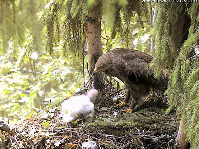 Labrīti, visiem!! 12:08 Pusdienas! Mētra ēd vardīti, Mikai negribas. Skatās kā mamma ieturas. Āaa, smukākie mīkstumiņi tomēr tiek arī mazajā knābī.