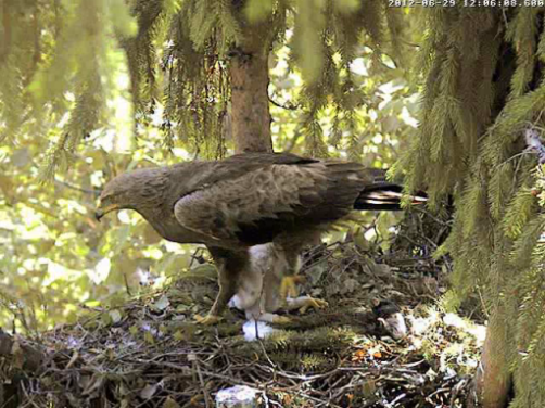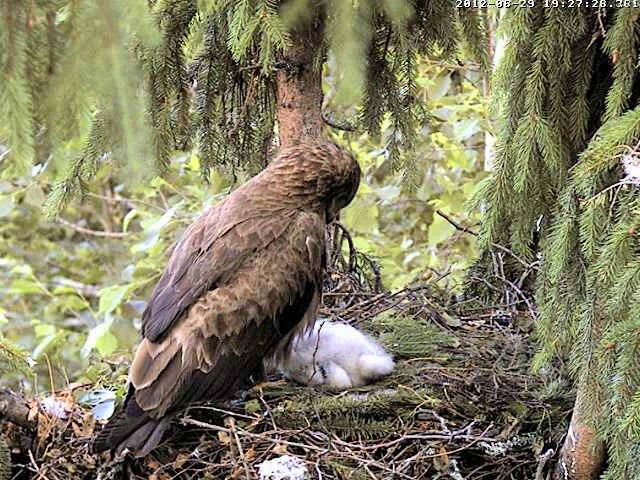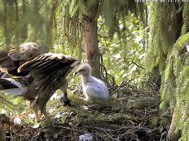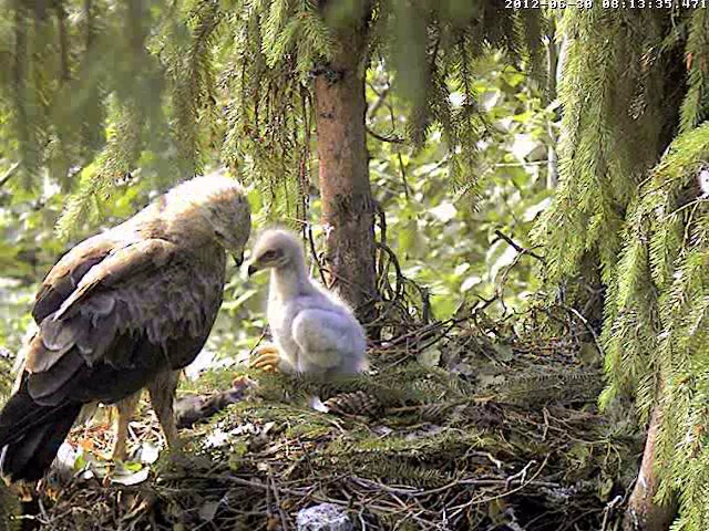Mētra satraukta klaigā un 12:07 atkal prom no ligzdas, pametot mazo ar visu kurmi.