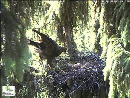 Bet par putniem, speciāli tiešām nemedī, bet pāris reizes mazi putnēni ir nesti ligzdā. Vienu atceros pērn Grietas ligzdā, bet 2009. igaunis bija mazu pīlēnu ģimenei atnesis. Ja jau tieši mutē skrien, tad ērgļi arī putnēnu apēdīs