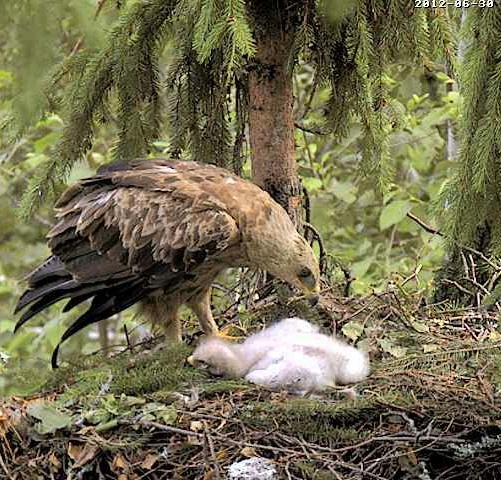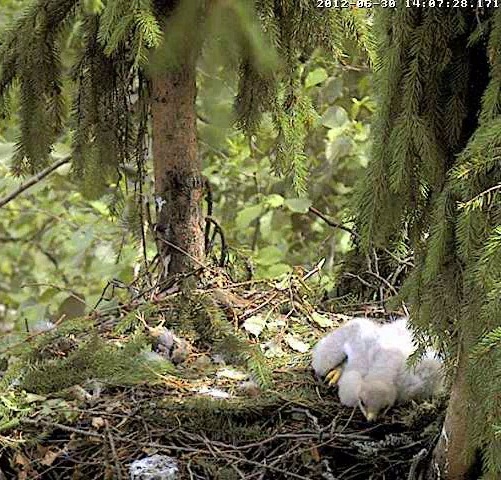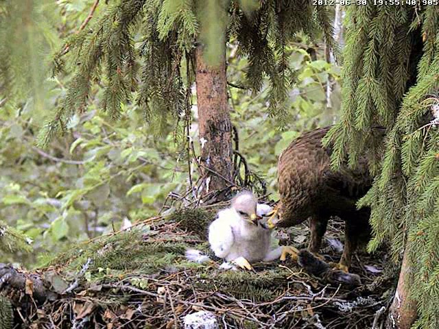 13:58 izskatās, ka nomedīts putniņš. Labi redzamas dzeltenas kājiņas. Šādas pusdienas nemaz neinteresē.
