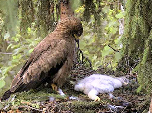 Mētra ķērkdama ierodas ligzdā ar saplēstu kurmi.