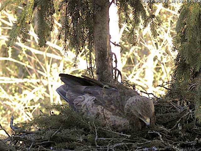 Mammuks sēdēja ligzdā no 15.15 līdz 17.40, tad aizlidoja