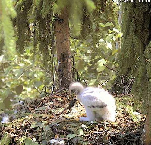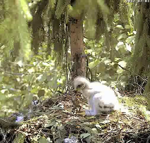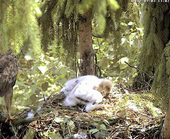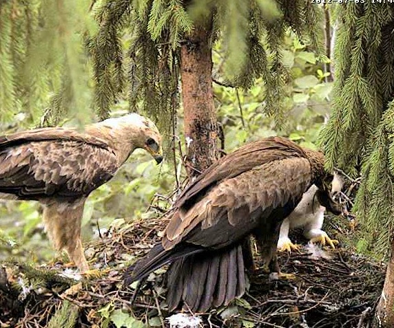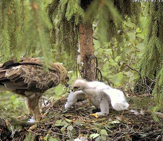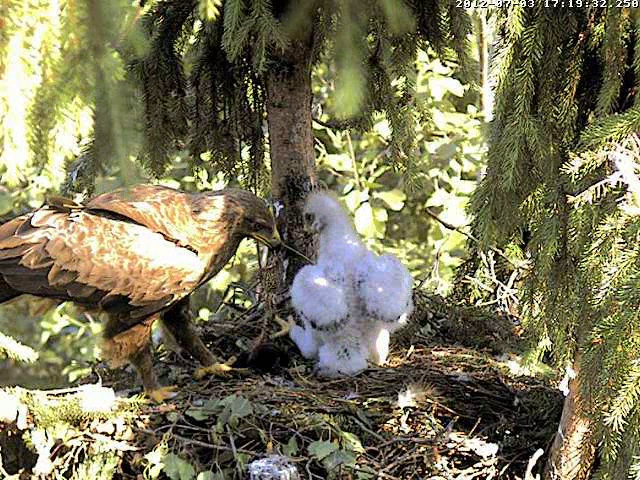 17.19 Lietišķā solī ieradās Mētra ar vardi knābī un tūlīt sāka barot Miku.