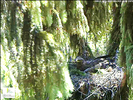 Dažas minūtes pēc 9 atlidoja Mačo ar kaut ko ēdamu, Mačo palika ligzdā, bet Mētra aizlidoja. Kad gāju prom 9.37, Mačo vēl perēja.