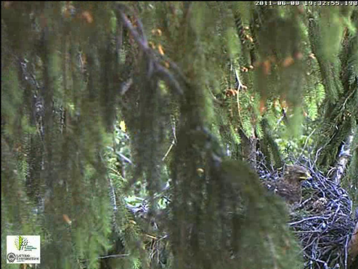 Bet Mētra gan nakšņoja ligzdā. Gāju gulēt ap 4 no rīta, kamera jau bija gaiša un Mētra mierīgi gulēja galvu zem spārna.