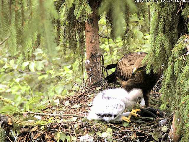 12.45 Mētra cilāja kurmjus, nēsāja pa ligzdu un nekā nevarēja izvēlēties kuru no viņiem ēst. Sīkais pīkstēja un visādi rādīja mammai, ka ir izalcis.