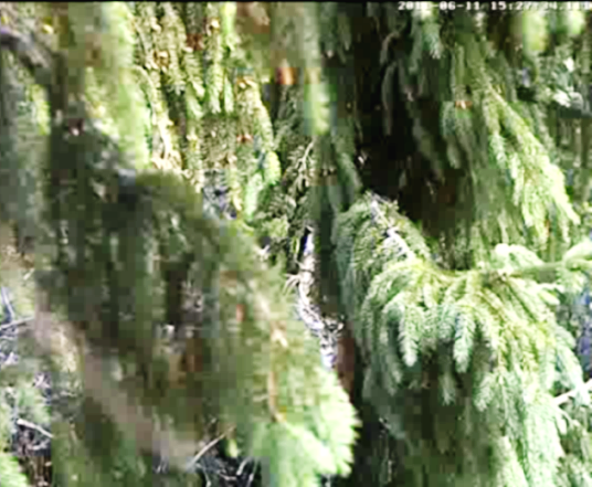 Pēc minūtes Mētra ielidoja ligzdā no labās puses ar lielu egles zaru.