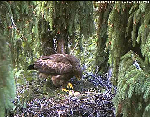 8:44 vēl nebija mājās. 8:48 atgriezās ar zāles kumšķi, papētīja olas un nolikās ligzdā.