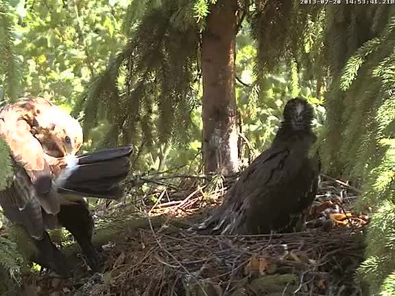 11.25 Mačo atnesa medījumu, bet mazais badakāsis ar spārniem virsū, vai tad es paspēju ieraudzīt ko šis saķēra