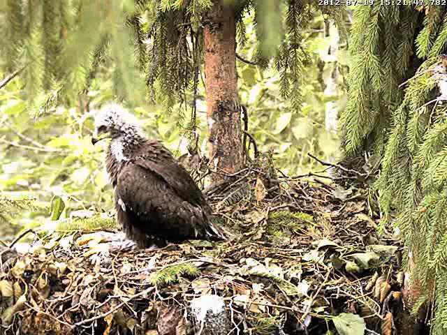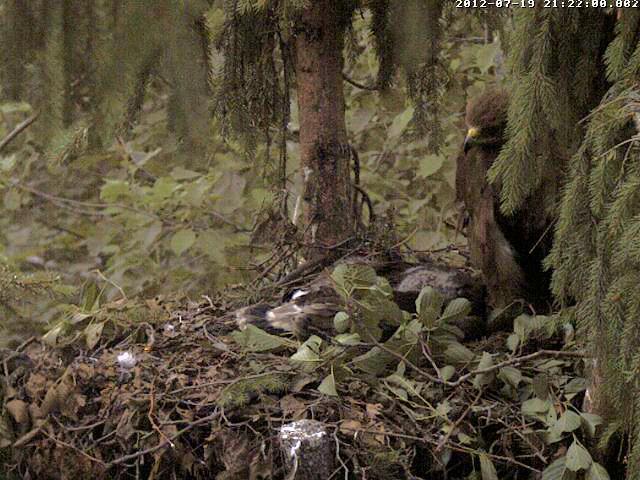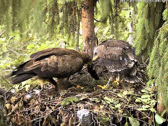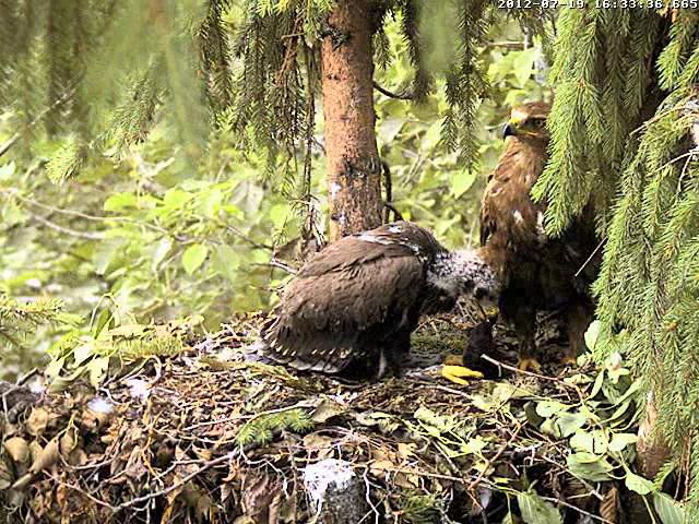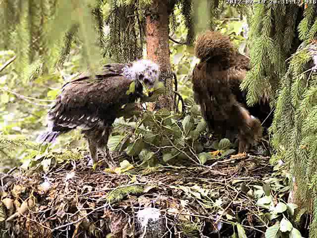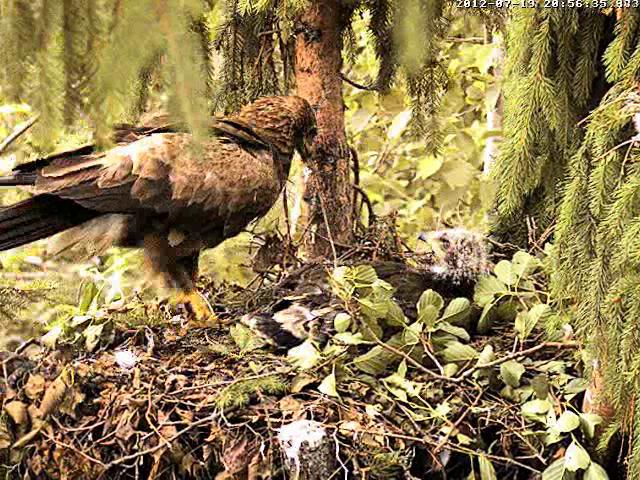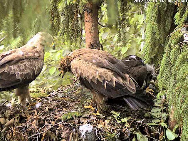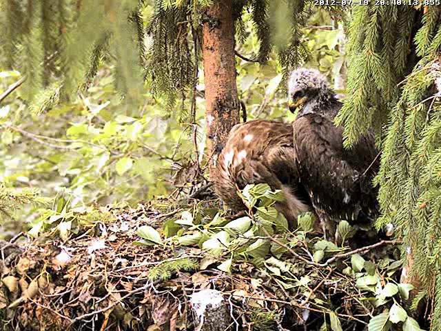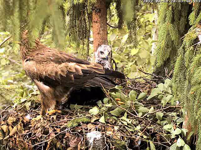15.36 Mētra nomedījusi palielu vardi un atnesa to augošajam badakāsim. Kamēr mazais ēda, Mētra stāvēja maliņā un tikai pēc tam izstaigāja ligzdu un pārbaudīja vai viss kārtibā.
