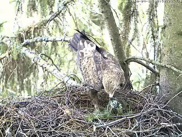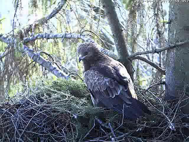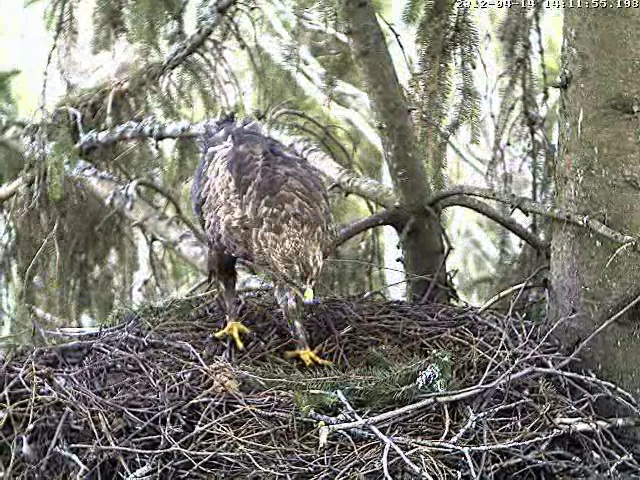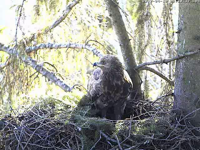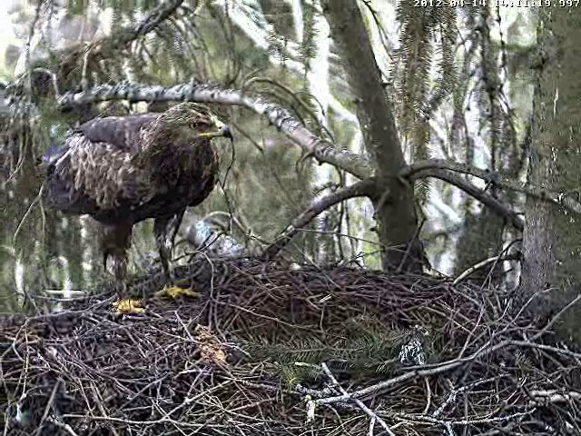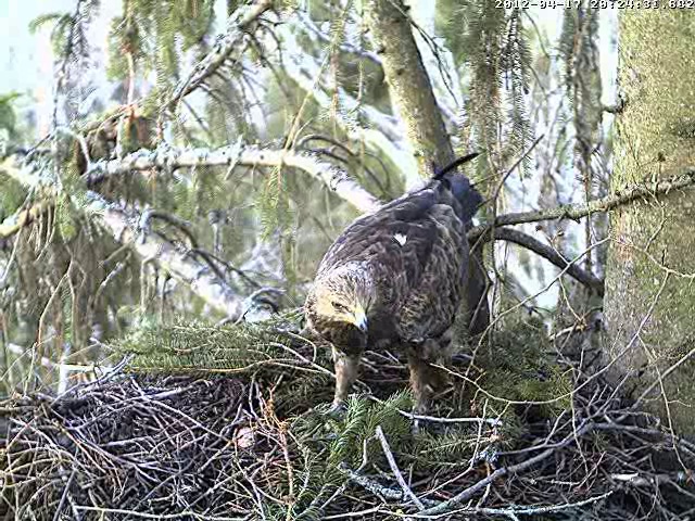 Vakar Uģis apsekoja ligzdas apkārtni, mātīte netālu no ligzdas klaigā. Caur kameru arī varēja dzirdēt. Vakar pēc 15 klaigāja ļoti skaļi un man likās, ka dzirdu arī atbildes saucienu, tacu ligzdā neviens neielidoja. Varbūt, ka atbildētājs bija kāds garāmlidojošs ērglis?