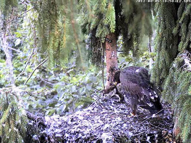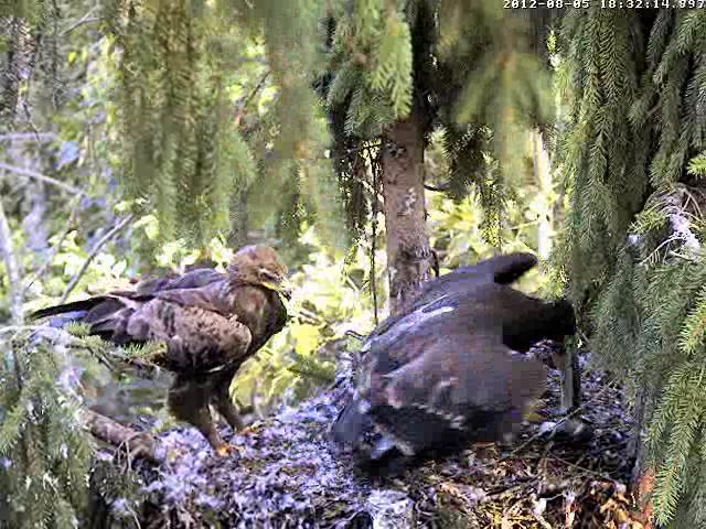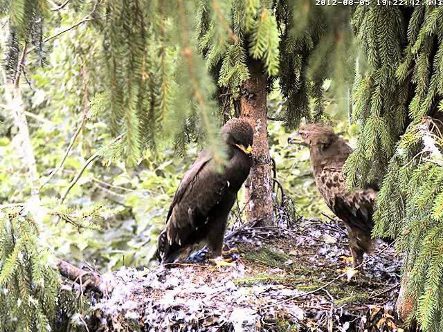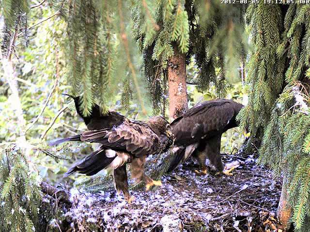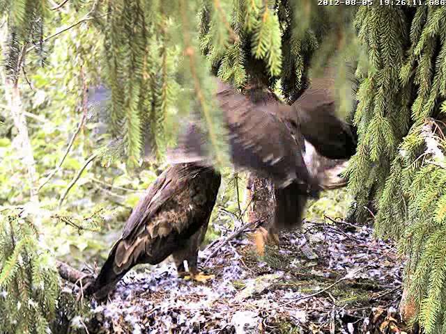 19:31 Mētra pārcilā žagarus ligzdā. Miks čalo, un vēro mammu, kura pucējas.