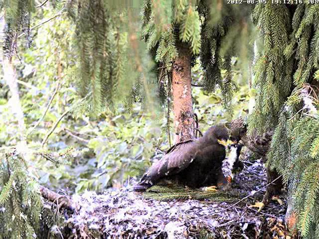 19:12 Mētra atlidoja ar egles zariņu. Nu abi viens otram staipa nost zebieksti. Smieklīgi! Mētra tomēr vinnēja un nu bēbīti baro