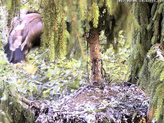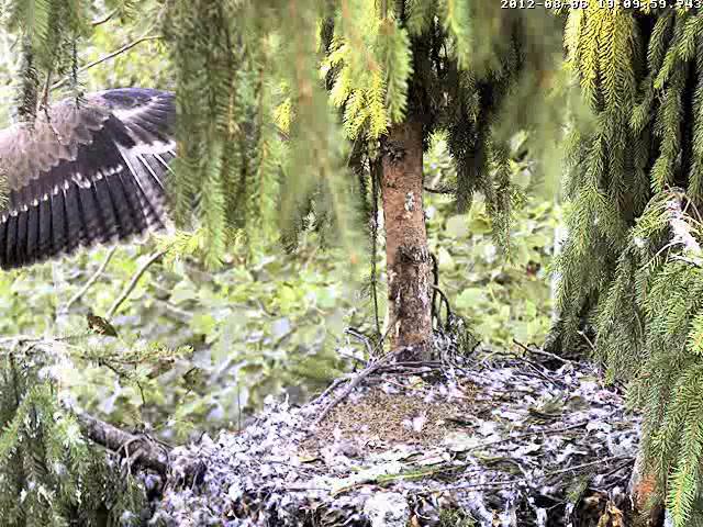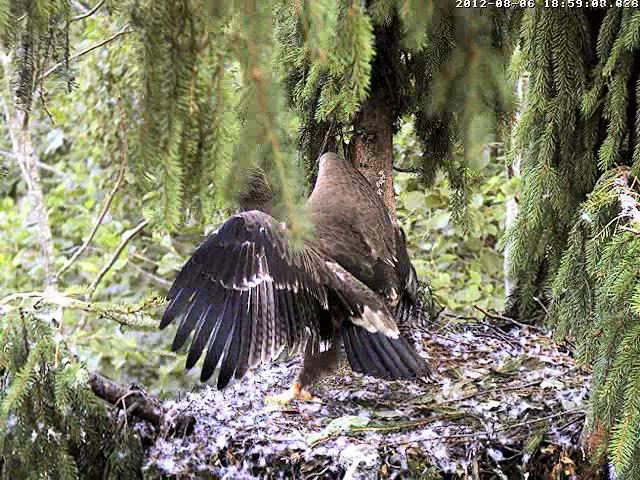 19:03 Miks aizlēca uz zaru. Nebija redzms 4 minūtes, tad uz pāris sekundēm atgriezās un atkal prom. Var noprast, ka tepat aiz kadra tup - zars šūpojas un pavīd pa spārna vai astess palvai.