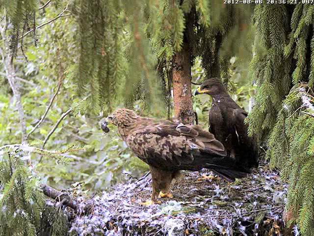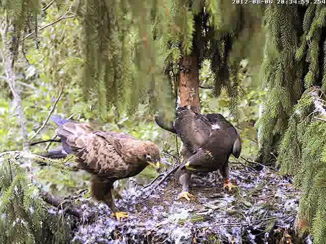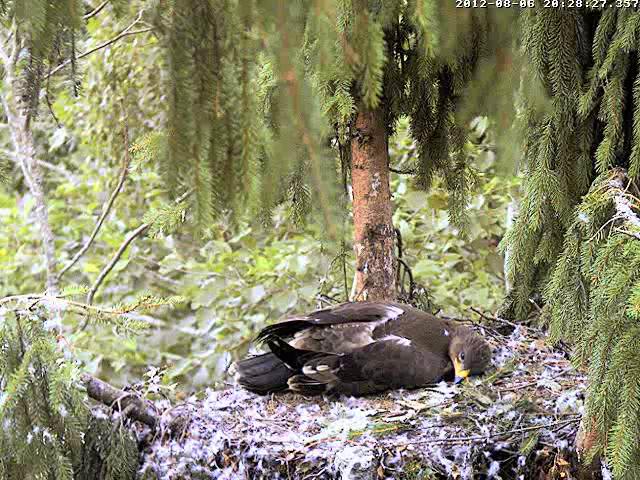 Mīcīt, es runāju ar Uģi. Viņš arī ir satriekts par tik liela ērglēna bojāeju. Viņš stāsta, ka vistu vanaga taktika tiešām ir šāda - tas uzbrūk un trenkā pa ligzdu, kamēr ērglēns izkrīt. Kamēr jaunais putns uz zemes vēl nav atjēdzies no kritiena un šoka, vanags dod izšķirošo galējošo triecienu - ar cirtienu pa galvu. Pēc tam vanagam ir dzīres - sāk plosīt piebeigto putnu. Cik izlasīju igauņu forumā, vides draugi Stefu atrada beigtu zem ligzdas koka, ar saplosītu galvu.