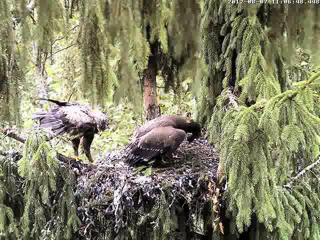 Ir noticis, manuprāt ,visinteresantākais notikums vebkameru pastāvēšanas vēsturē,ir pierādijies ka vistu vanags ir spējīgs nomedīt jau gandrīz lidojošu mazo ērgli!!!Tas arī viss ,vilks nav aizstiepis un aprijis vienu igauņu zīdaini...