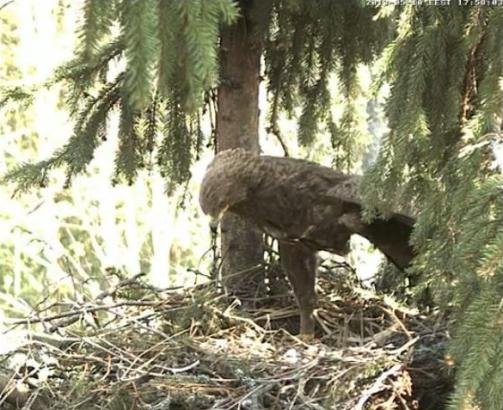 Mētra atgriežas ligzdā. Bija atstājusi ligzdu uz vairākām minūtēm.