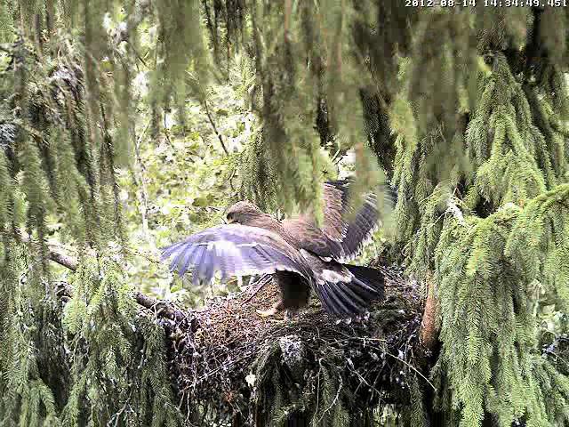 14:35 Miks ligzdā vingrinās. Pē minūtes lidojums vai liels lēciens kameras virzienā.