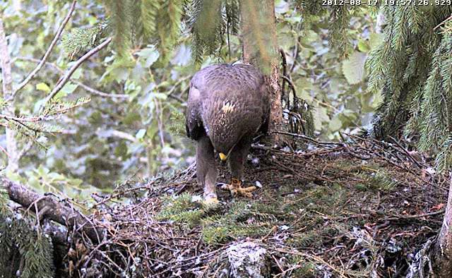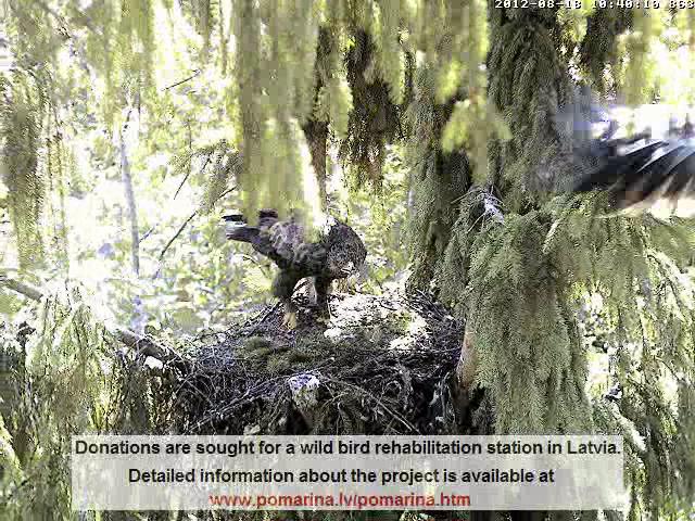 10.40.14 Mētra stāvēja un gaidīja Miku, bet kad viņš iedrāzās, Mētra paleca nost pa labās puses ligzdas malu. Viņa varēja arī neatdot tajā brīdī vardi. Pēc dažām sekundēm ērglis ielidoja un atdeva ēdienu, saule spīdēja tā, ka ērgli nevarēja atpazīt. Ja Mētra sākumā izleca no ligzdas neatdevusi vardi, tad viņa varēja aplidot riņķi un ielidot vēlreiz.