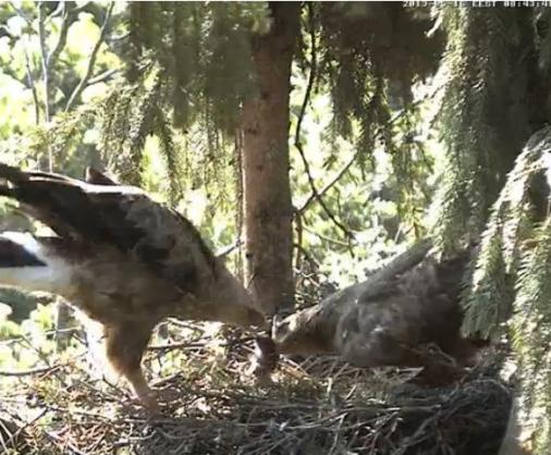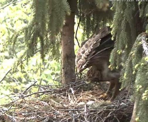 Kad tikko ieslēdzu ap 7.15, ligzdā rosījās Mačo un Mētra bēra pateicības treļļus, laikam brīdi pirms tam kaut kas bija atnests.