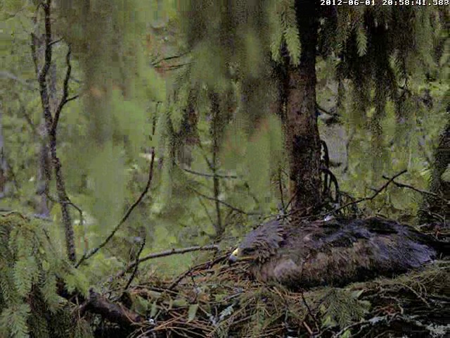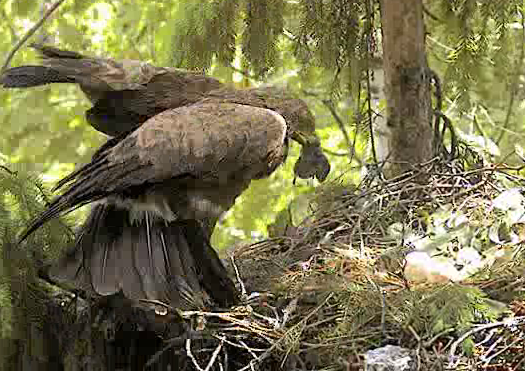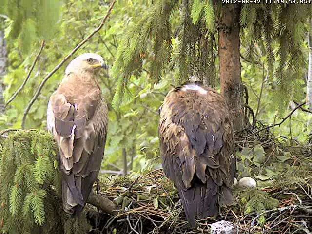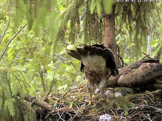 12:02 Mētrai kaut kas nepatīk... traki klaigā, skatās apkārt, izlidoja paskatīties vai patrenkāt.. drīz atpakaļ, staigā pa ligzdu un raugās uz visām pusēm. Laikam kaut kas draudīgs.