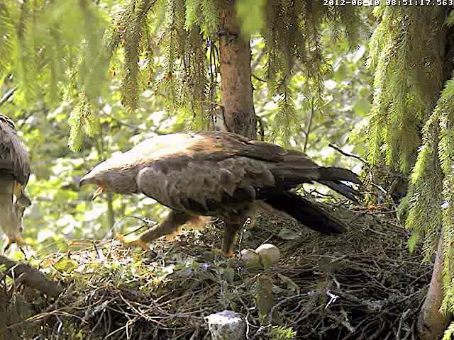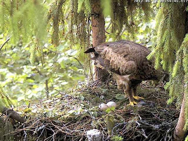Forumā nav piefiksēts, bet 8.51 Mačo atnesa peli. Viņš ilgāku laiku sēdēja uz zara un attiecīgi Mētra sēdēja ar muguru pret kameru un bēra treļļus. Kad Mačo aizlidoja, Mētra paņēma peli, apgāja ligzdu un nolika tajā vietā, kur vēlāk virsū uzlika kurmi.