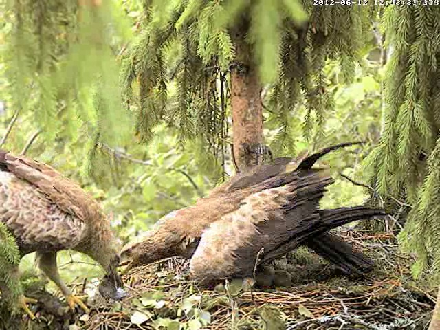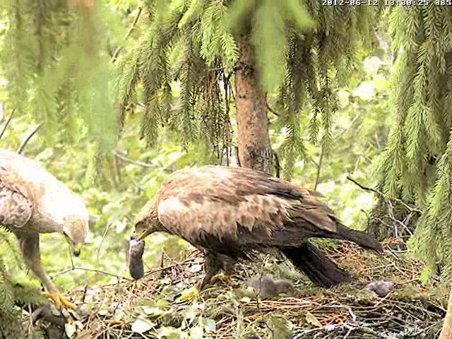 15.32-15.45 Abi paēda. Mētra apēda pirmās peles atliekas un otro peli, trešo daļēji izbaroja mazajam, bet mazu gabaliņu atstāja vēlākam laikam.