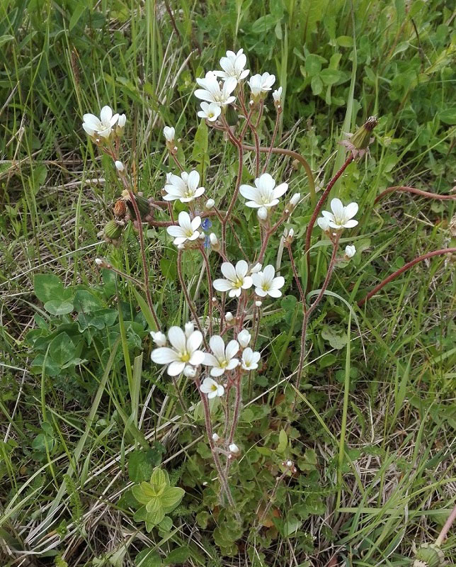 sīpoliņu akmeņlauzīte (Saxifraga granulata). Te gan ne pārāk var redzēt lapas, kas ir raksturīgā skatā, bet citādi viss atbilst.
