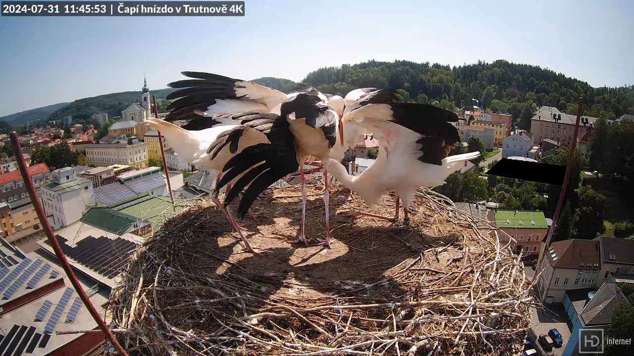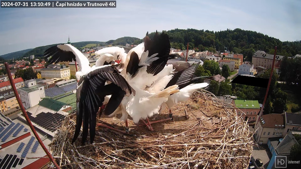 Trutnovas stārķis kaut kur klīda, kad pulksten 16:15 uz viņu tukšās ligzdas piezemējās svešs stārķis . Viņam nebija gredzena, bet viņam bija augsti, balti ceļgalu augstiņi. Jaunieši droši vien domāja, ka viens no vecākiem ir ieradies ar uzkodām un steidzās mājās. Tomēr svešinieks visus padzina, notika pat īsa sadursme ar Džonatanu tieši uz ligzdas. Visbeidzot, otrs stārķis ar CNP CE806 gredzenu nolaidās uz skursteņa . Kā izrādījās, tā bija Johanka , kas šogad neveiksmīgi ligzdoja Česká Metujā. Viņa izšķīlās 2021. gadā Otovicā, tajā pašā ligzdā, kuru kopš pagājušā gada ieņēma Bohunčin Víťa. Johanka pēc stundas padzina savu gidu un 17:24 aizlidoja pati. Tātad tālāka cīņa nenotika. 18:15 Johanka atgriezās vēlreiz, bet Magda atradās uz ligzdas un viņa neļāva viņai nolaisties.