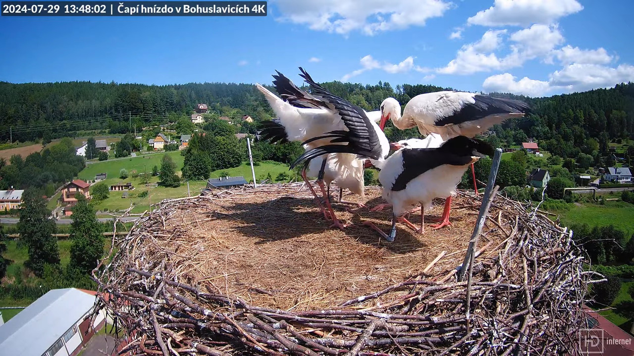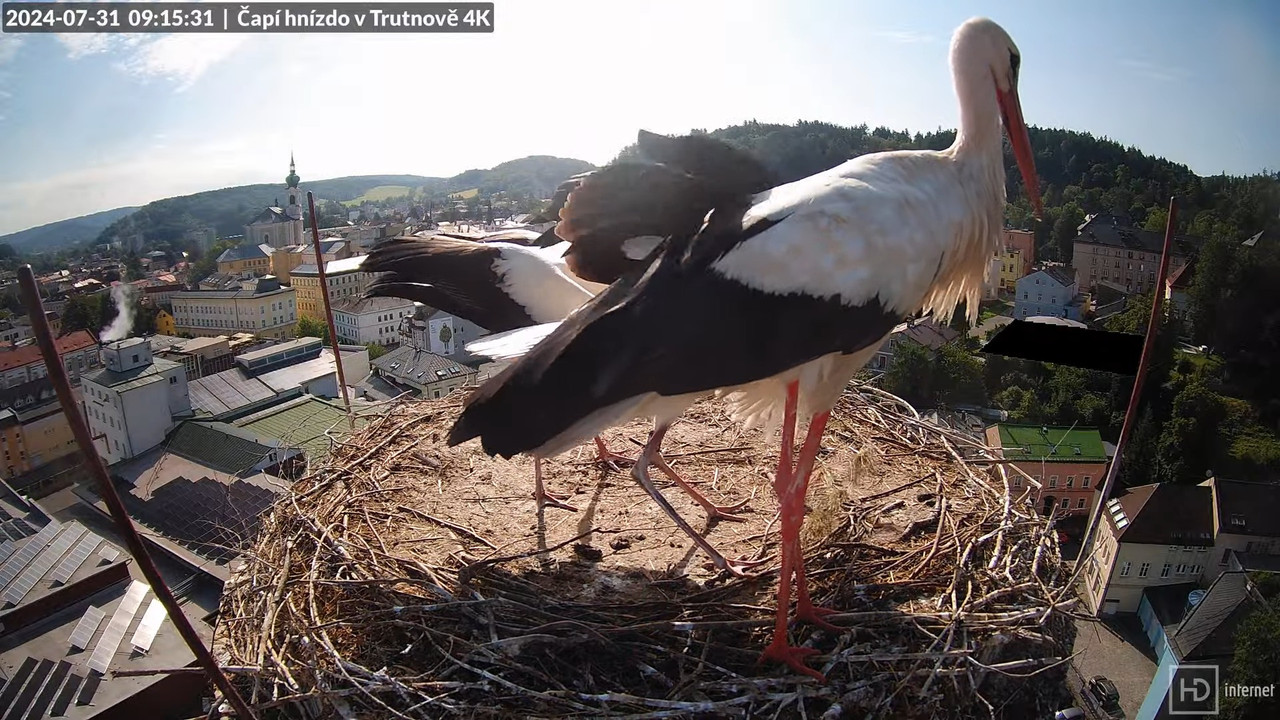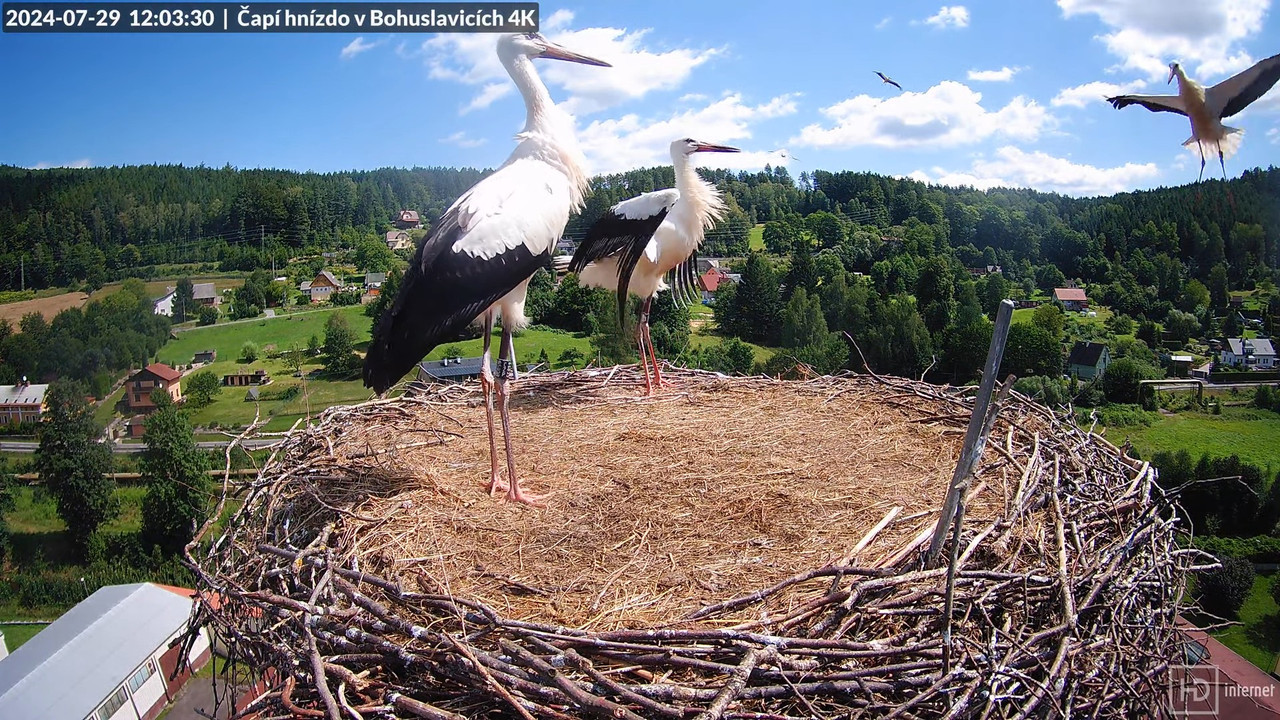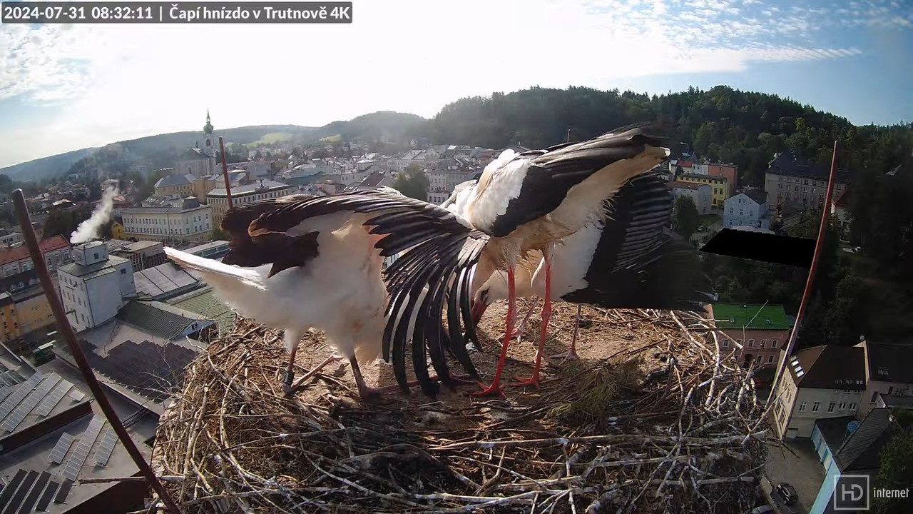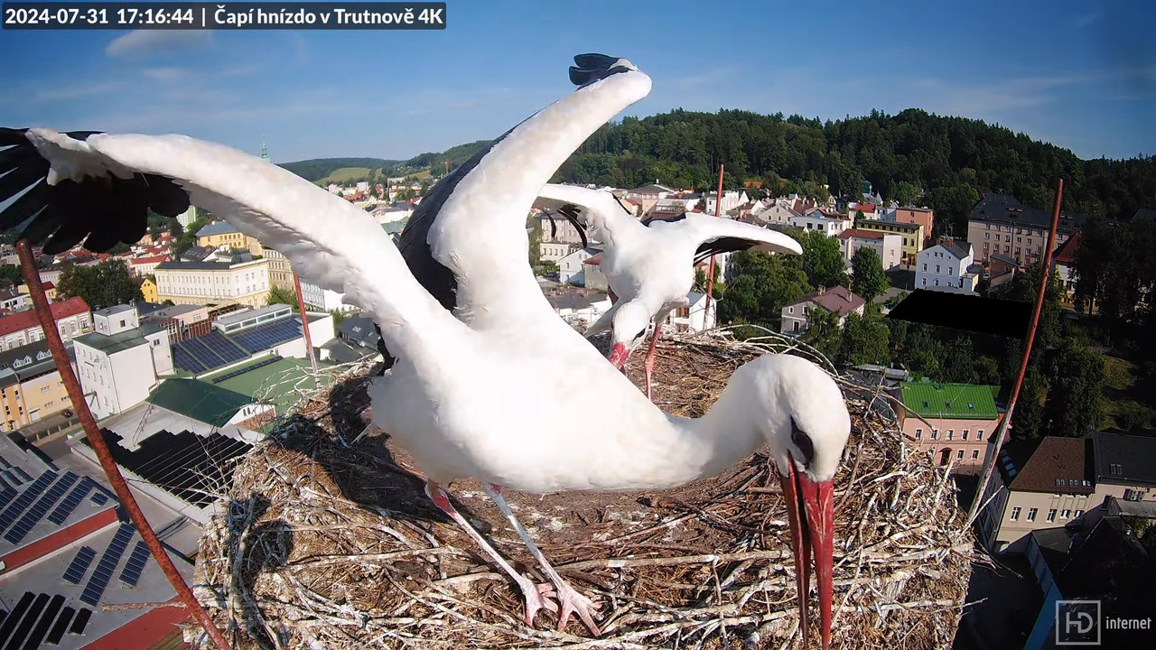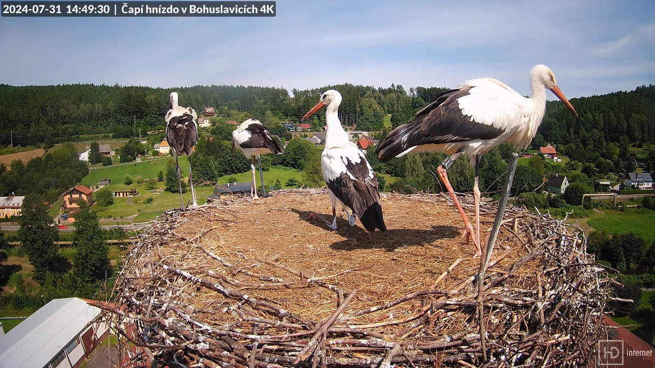Stārķu izbraukšana no ligzdām uz pulcēšanās vietu rit pilnā sparā, lai gan ne vienmēr tā ir pastāvīga aiziešana no ligzdas. Piemēram, otrdienas pusdienlaikā visi pieci jaunie stārķi pacēlās no ligzdas Slavětínā, un tikai viens atgriezās nakšņot. Tomēr pazudušais četrinieks šodien atkal parādījās pirms pusdienlaika, redzot pusdienas no viena no vecākiem. Jebkurā gadījumā priecāsimies par jebkādu informāciju par stārķu pulcēšanās vietām mūsu novadā. Tās parasti ir vietas, kur notiek lauksaimnieciskā darbība un stārķiem ir iespēja viegli iegūt lielāku barības daudzumu. Šādā vietā var parādīties pat desmitiem stārķu. Ja jūs saskaraties ar šādu vietu, lūdzu, informējiet mūs.