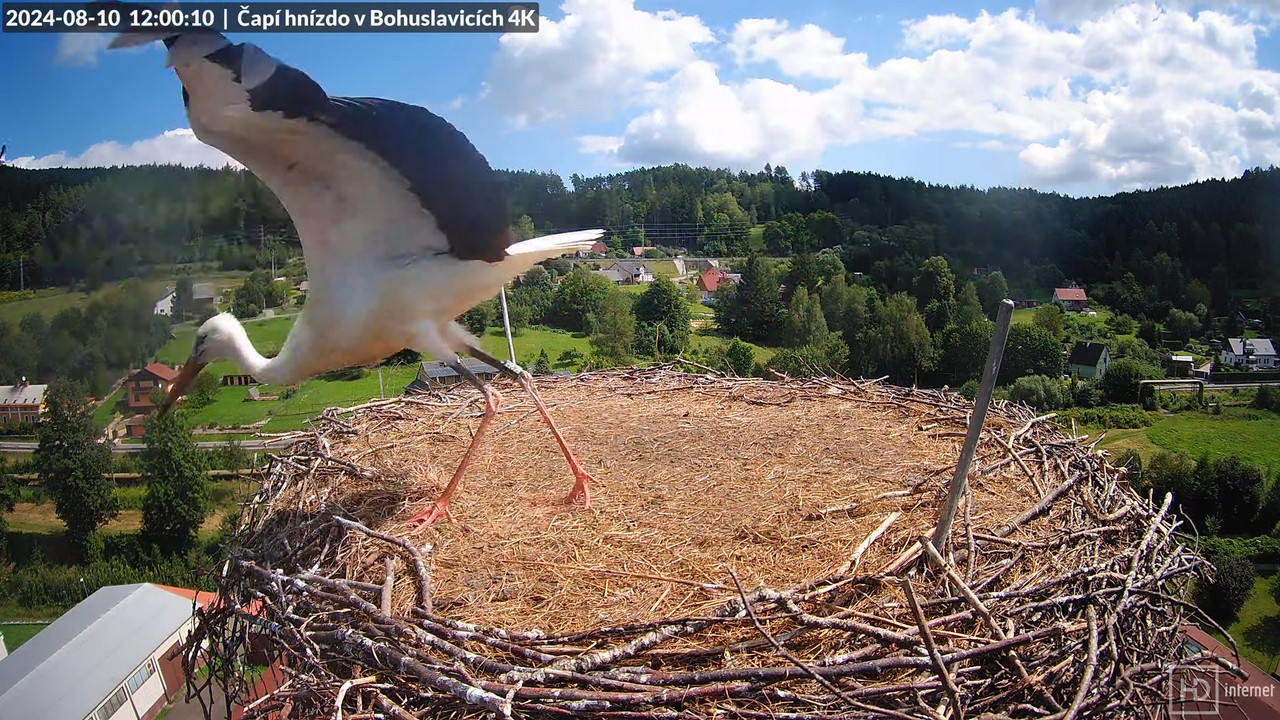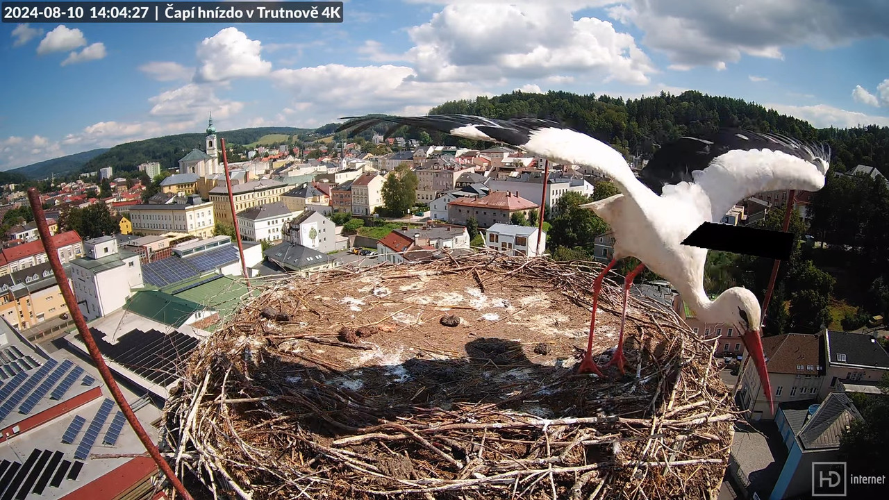 6.05 Betiņa lido pie Bukija uz mazo ligzdu, līdzi lido vēl kāds stārķis.