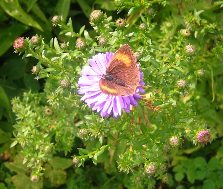 Man likās, ka visi pļavraibeņa izmēra tauriņi jau šīsvasaras gaitas beiguši, bet šodien uz miķelīšu pumpura ieraudzīju tāda izmēra tauriņu. Izmeklējos pa poļu lapu un man liekas, ka tā ir bērzu zefīra, vai nu varbūt ozolu astainīša mātīte. Poļu lapā bērzu zefīrs tā kā spilgtāks, bet oranžais pleķis tomēr pēc formas līdzīgāks kā ozolu astainītim. Ceru, ka par astainīšiem un zefīriem (kur var tāds nosaukums rasties :?: :) ) vēl kaut kas kādam būs ko teikt, ja ne tagad, tad nākamvasar, tad nu atvēru viņiem kopīgu topiku - arī poļu lapā viņi kopā savietoti :) .