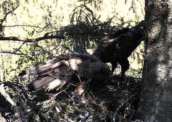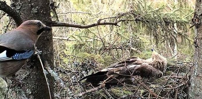 Ap ligzdu jau labu laiku uzmācīgi riņķo sīlis, ērglene ir ļoti satraukta.