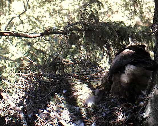 Ehai arī pilna ligzda ar ēdamo. Redzeju šodien Koitu 3x nesam medījumu 7:18, 7:50 un 10:32. Kamēr vēl mazulis tik maz ēd. ehai veidojas uzkrājumi.
