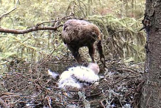 16:54 Koits atnesa ģimenei putniņu. Eha bez lielām pārdomām ķērās pie barošanas.