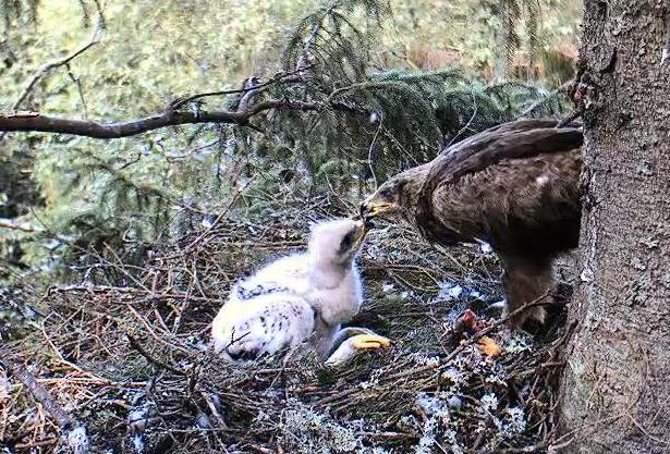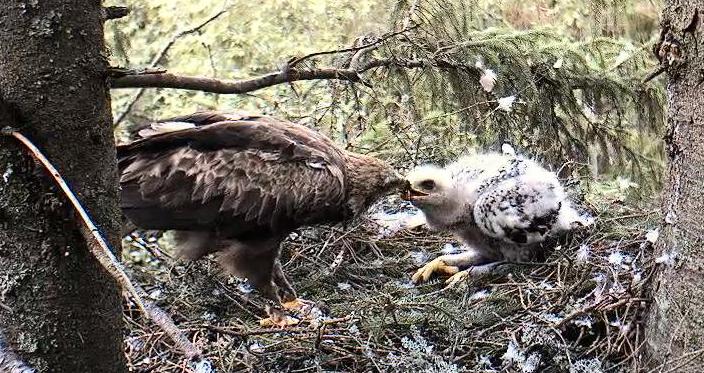10:43 Koits atnesa kurmi. Pēc īsas pauzes Eha ķērās pie barošanas.