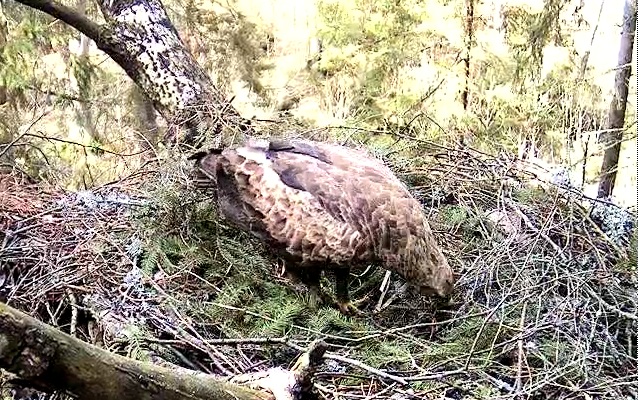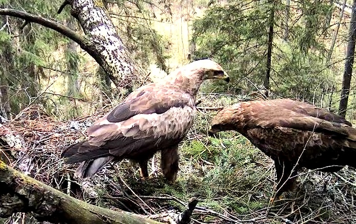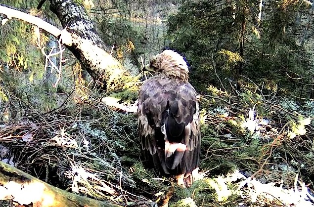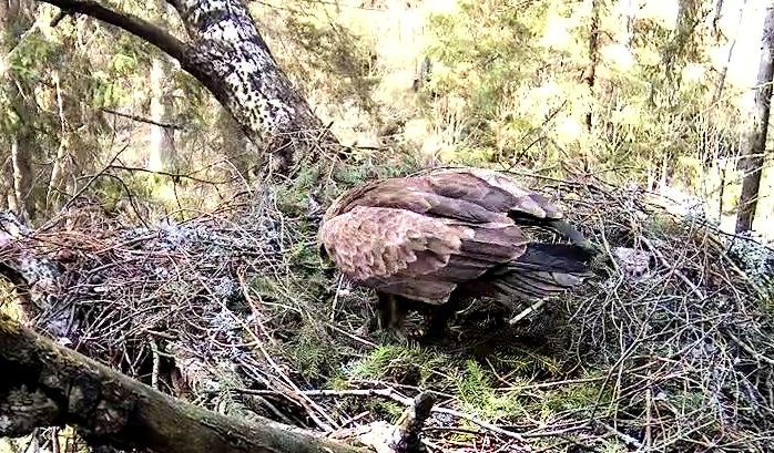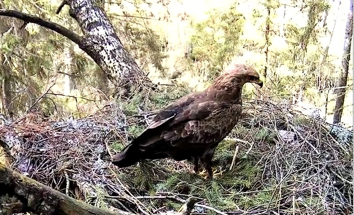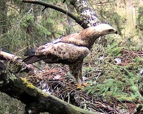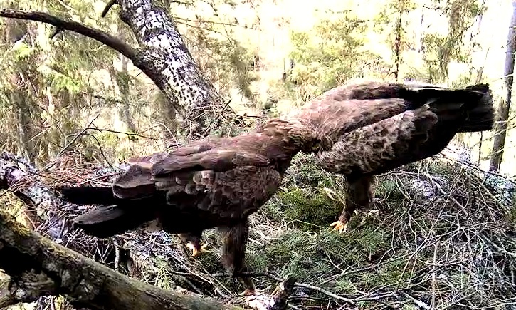 Šorīt ap 6.20 pa ligzdu ņēmās abi ērgļi Ap 7.30 ligzdā bija tikai Tūle, 8.01 Tūle aizlidoja