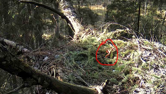 Šajā (tāpat kā Ehas) ligzdā ir laba zīme - atnesti zāles stiebri. Uģis saka, ka ja ērglene sāk nest zāli, tas liecina, ka ola būs ļoti drīz.