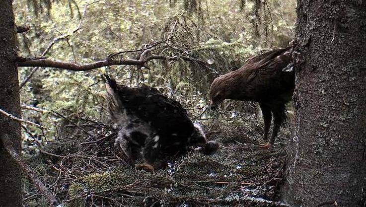 Vērotāj, Kalevs arī līdz šim diezgan maz staigāja, man šķiet, ka ligzda nav īpaši ērta staigāšanai uz nestabilām kājām, ligzdas konstrukcija stipri atšķiras no Mētras, es nemaz nesalīdzinu ar Tuules, kas ir stārķa ligzda.