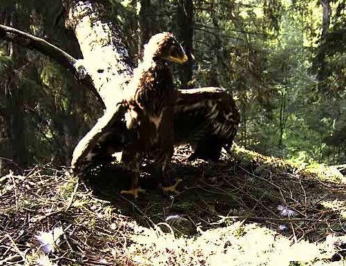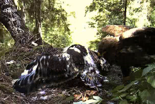 14.09 Remo atnesa medījumu, Tormi uzreiz ar spārniem virsū. Kad tēvs aizlidoja, Tormi salika spārnus normāli un var redzēt, ka atnests paliels grauzējs, kuru mazais plūkā.
