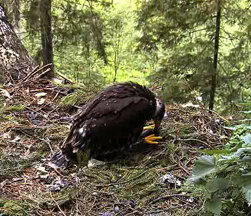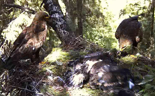 Igauņu ērglis ieslēgts jau kā no rīta, taču nekas interesants ligzdā nenotiek, vecāki bija agri no rīta un tēvs ap 13.
