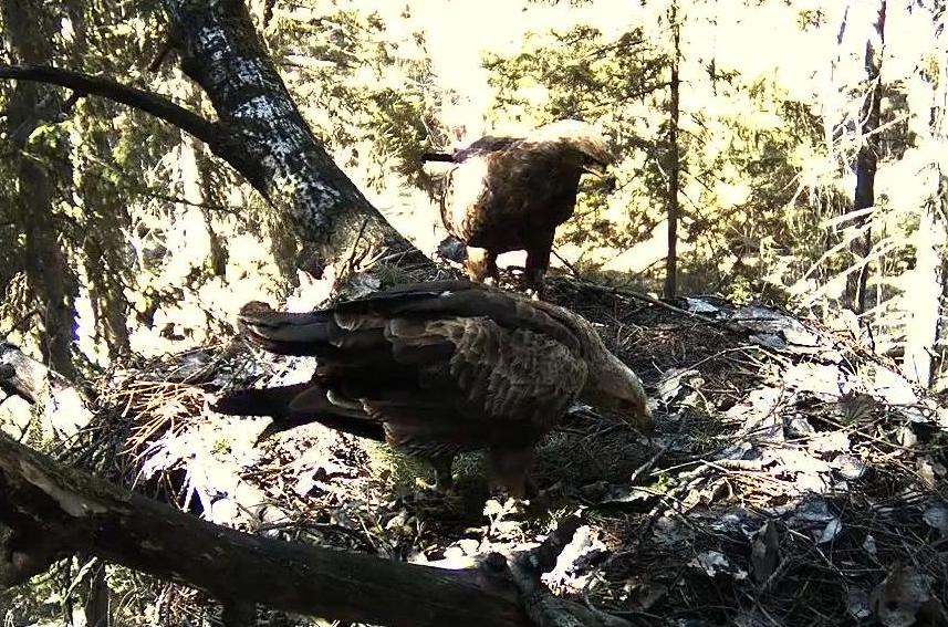 Domājot par šo ligzdu - cik ir redzēts iepriekšējos gados, kad ērgļu pāri (jebkuri) neizvēlas iepriekšējā gada ligzdas, tad tomēr viņi epizodiski vecajās ligzdās pirmā gada pavasarī ielido. Kad sāk perēt, tad gan vairs nē.