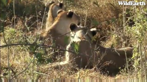 Tiešraides laiku gidi pārtērēja par 40 minūtēm, lai mēs labi varētu apskatīt lauvu maltīti tuvplānos. Krūmos varēja redzēt vēl citus lauvas, bet tie netuvojās, kamēr šie ēda.