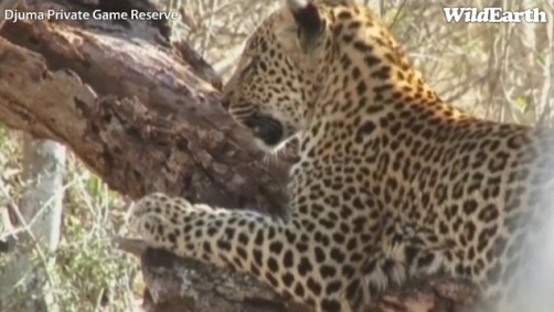 Drīz vien viņš (lai gan no komentāriem sapratu, ka leopards ir viņa, bet vārdu nepierakstīju) uzkāpa kokā un turpināja ēst tur iepriekš uznesto un jau apgrauzto medījumu.