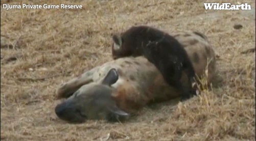 Kad piebraucām, lielā dominējošā hiēna ar kuplo asti ierādīja pārējām viņu vietu, kožot aiz čupra un spiežot pie zemes. Citā vakarā redzēju, ka šī hiēna apčurāja pārējās