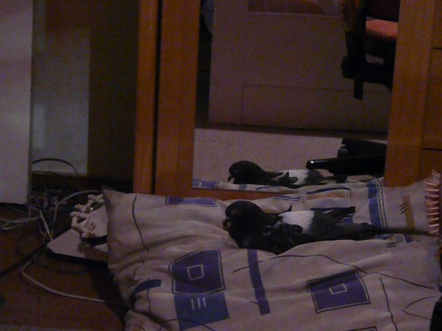 Par baložiem - bērnībā ziemā atradām nekustīgu balodi - mājās "atkausējām", bet šis vēl ēst nemācēja. Jaunputns salā izlaists no ligzdas